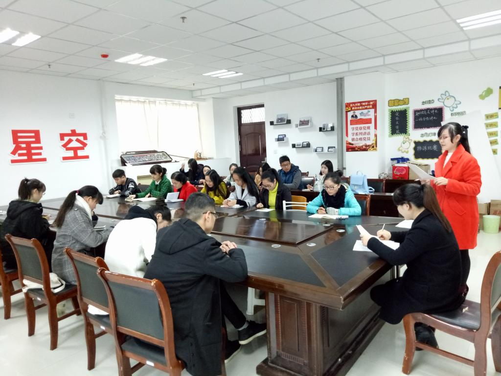 为积极推进“两学一做”第二专题学习教育,11月7日上午,我院学生第一党支部召开以“学模范道德、求思想上进、悟党性修养、做品行党员”为主题的讨论会。学生第一党支部全体党员参加会议,会议由学生党支部书记韩慧鸽主持。