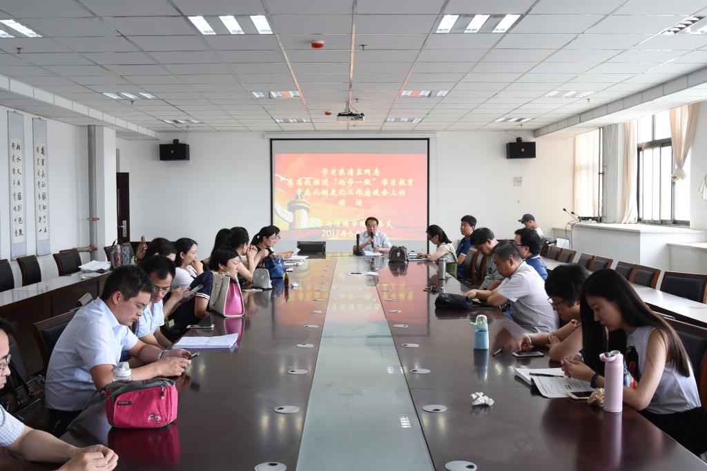 为进一步深刻学习领会朱清孟同志讲话精神,推动我院作风建设再上新台阶,我院于6月16日下午三点,在文科综合楼1417教室开展关于学习朱清孟同志在高校推进“两学一做”学习教育常态化制度化工作座谈会上的讲话的学习讨论会。会议由我院党总支书记赵颖主持,全体教工党员参与了此次会议。