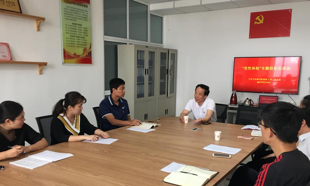 6月14日下午三点,文学与传媒学院教职工第一党支部在文科综合楼1509办公室召开专题组织生活会。本次会议由支部书记张姗姗主持,校工会主席杜志傲莅会并作了重要讲话,支部全体党员参加了本次会议。