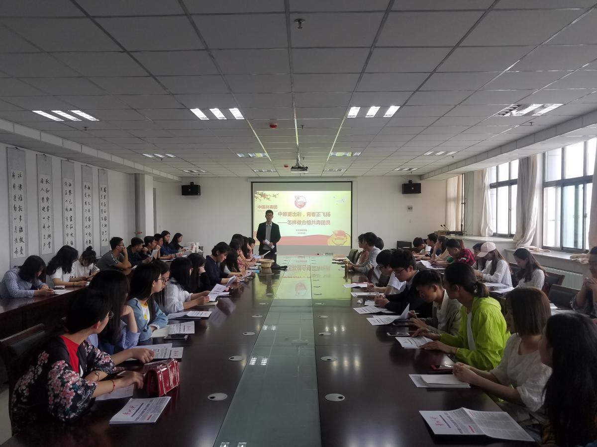 本次培训内容主要包含:重温团的历史、学习团章做合格共青团员、学习“一学一做”、发挥团员的带头模范作用和做一名优秀的共青团员五个方面。首先,訾冉老师向同学们具体阐述了团的历史和章程。紧接着,訾老师就“如何做一名合格的共青团员”这一话题,与同学们展开深入交流,他指出,共青团员作为中国共产党的接班人,要严于律己,树立坚定的理想信念,时刻牢记自己团员的身份,铭记自己的历史使命,甘于奉献,为实现中华民族伟大复兴贡献青春力量。最后,訾冉老师向同学们提出几点希望,希望同学们要有理想,勇担当,不保守,肯付出,立足于本职工作,紧跟时代步伐,践行社会主义核心价值观。