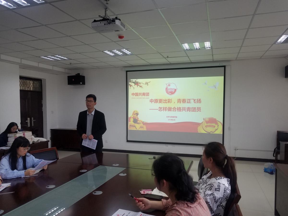 4月27日下午,文学与传媒学院在文科综合楼1417会议室组织开展以“怎样做一名合格的共青团员”为主题的新一期分党校培训课程。本次培训由我院团总支副书记訾冉主讲,我院本学期入党积极分子参加了此次培训。