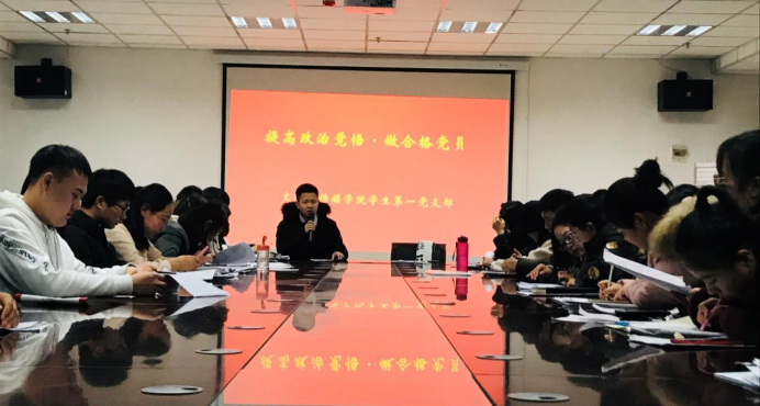 12月11日下午,我院学生第一党支部开展“提高党员政治觉悟”主题党课。大会由学生第一党支部副书记简众杰主持,全体学生党员和预备党员参加了本次会议。