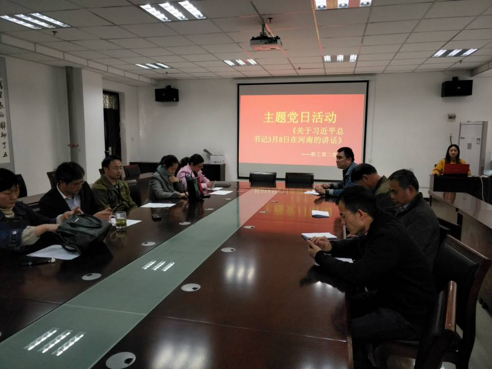 3月18日下午,我院教工第二党支部召开学习“习近平总书记在河南代表团审议时的讲话精神”的主题党日活动。本次主题活动由党支部书记于正安主持,全体党员参加了此次专题学习。