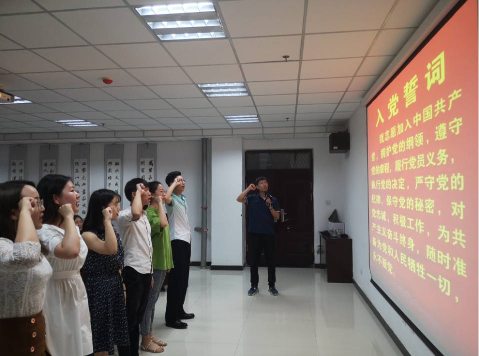 会上,5名党员发展对象逐一宣读入党申请书,简明扼要地汇报了发展期间个人在思想、生活、学习、工作等方面的突出表现,表达了入党动机和加入中国共产党的强烈愿望。入党介绍人及其他与会党员对其学习、工作、实践活动等方面进行中肯的评价,并对他们的申请进行了无记名投票表决,一致同意吸收赵琰等5名党员发展对象成为支部预备党员。訾冉书记对他们表示了祝贺,并且表示顺利成为预备党员的同志要按照党章严格要求自己,以身作则,在转为正式党员之前认真改正本次会议上其他党员提出的批评意见。最后,在支部书记訾冉同志的带领下,所有新发展的预备党员面对党旗庄严宣誓。