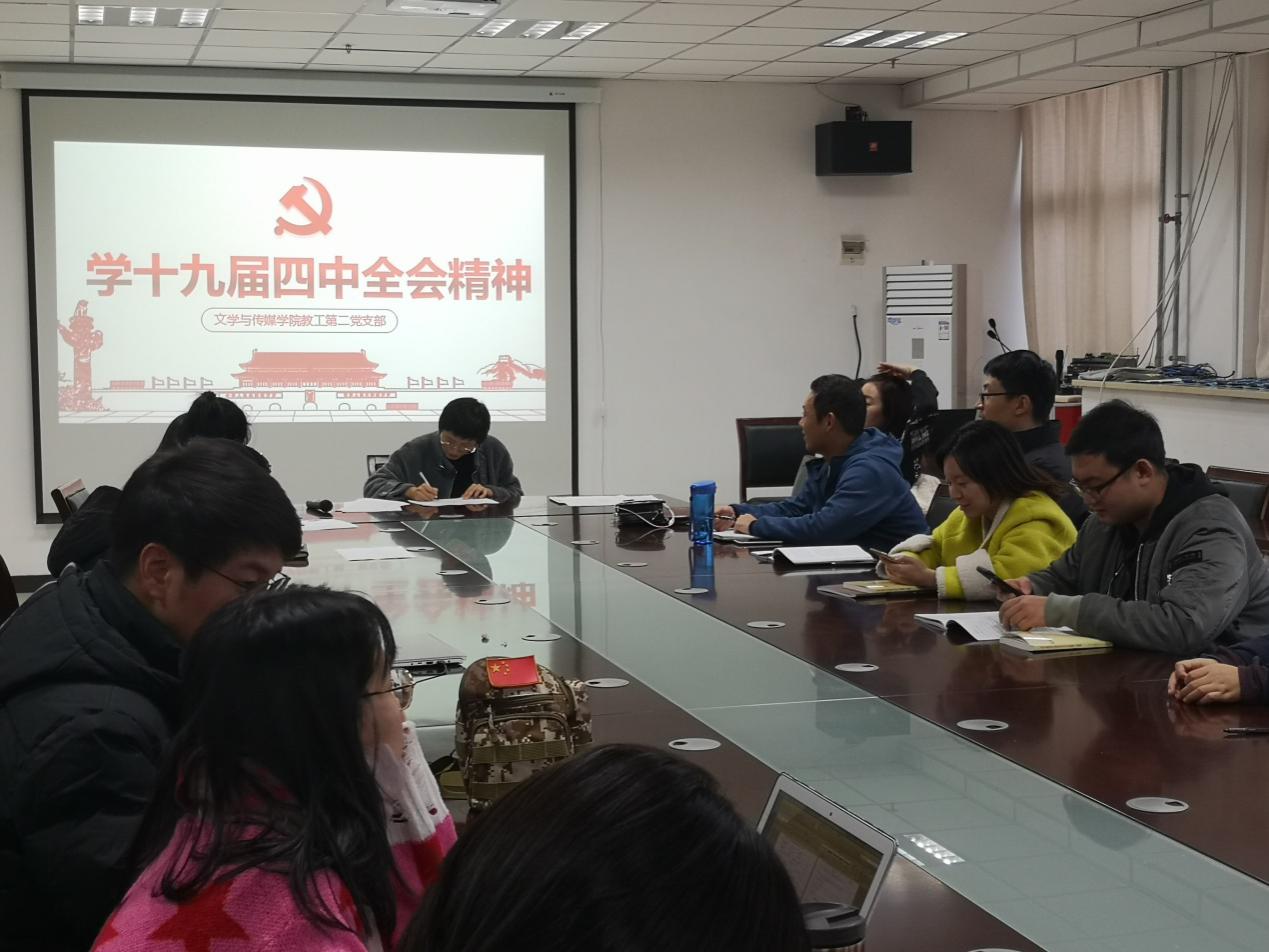 12月6日,我院教工第二党支部开展学习十九届四中全会精神的主题党日活动。本次会议由党支部书记苗阳主持,全体党员教师参加。
