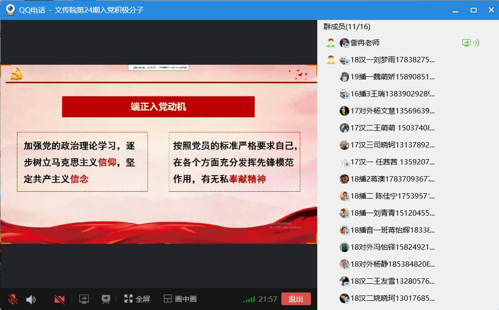 4月10日,我院组织24期入党积极分子开展“端正入党动机,争取早日入党”的线上主题党课,本次党课由訾冉老师主讲。