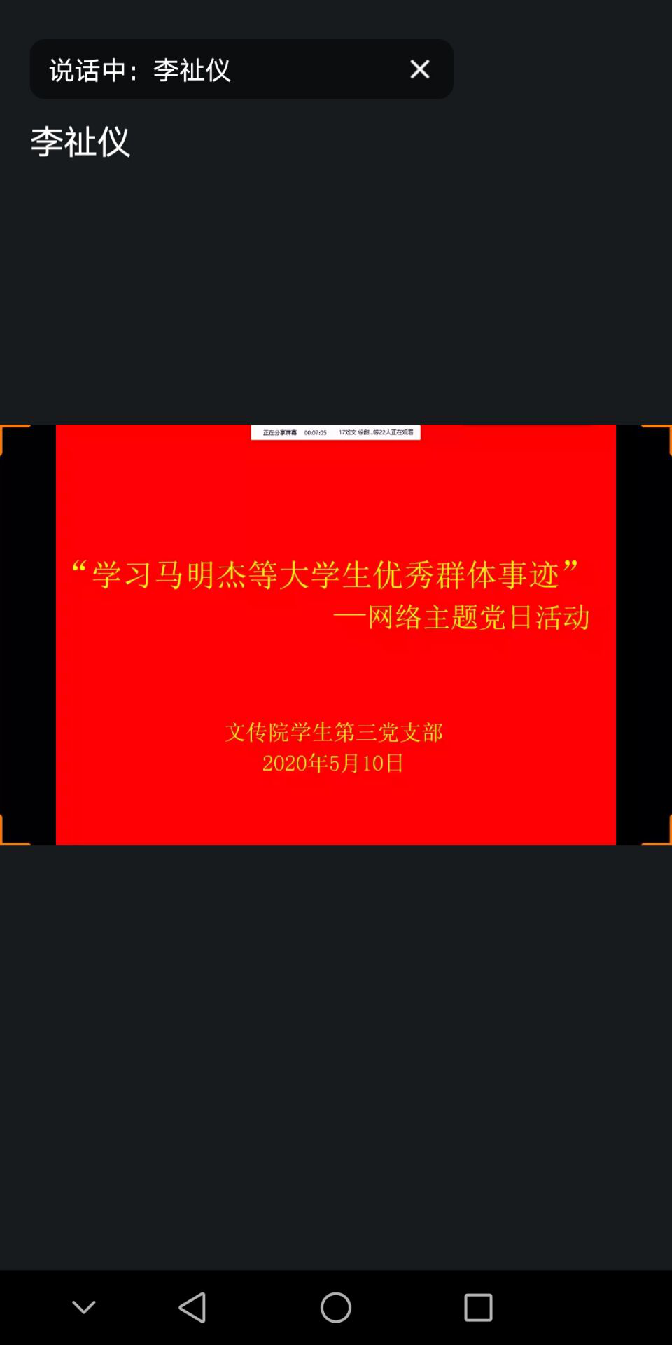 5月10日下午,我院学生第三党支部线上开展“学习马明杰等大学生优秀群体事迹”的网络主题党日活动。支部全体党员、预备党员以及党员发展对象参加本次活动。