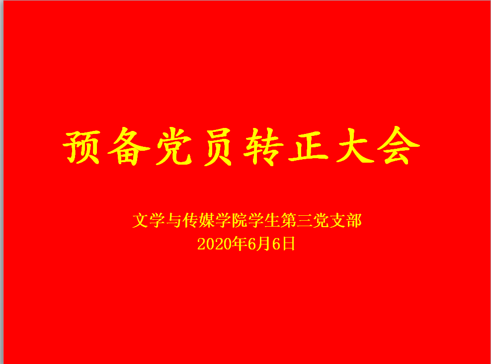 6月6日下午,文学与传媒学院学生第三党支部线上召开预备党员转正支部大会。会议由党支部书记訾冉主持,全体支部成员参加了本次会议。