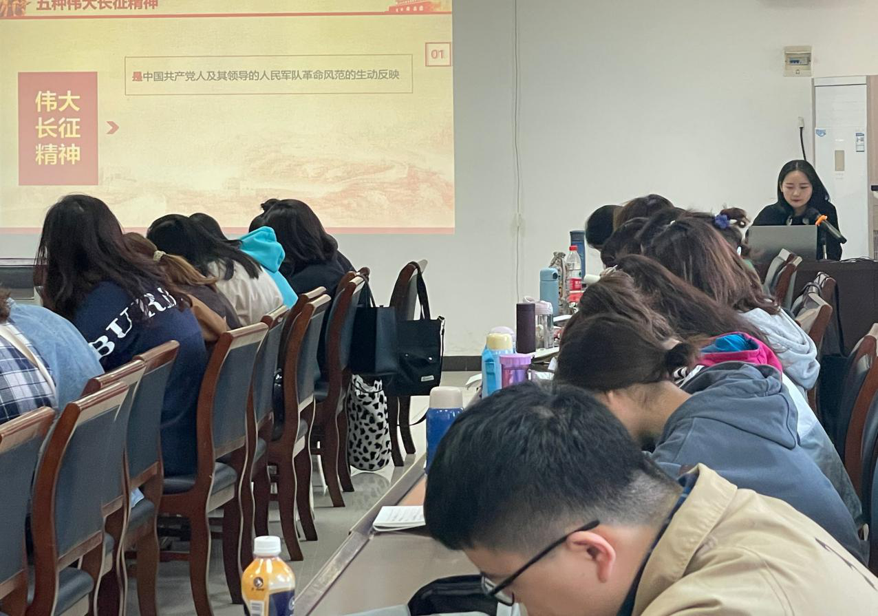 11月8日上午,我院在文综楼1417进行了以“弘扬伟大长征精神”为主题的分党课培训。本次分党课由我院学生第一党支部党员苗旭静主讲。