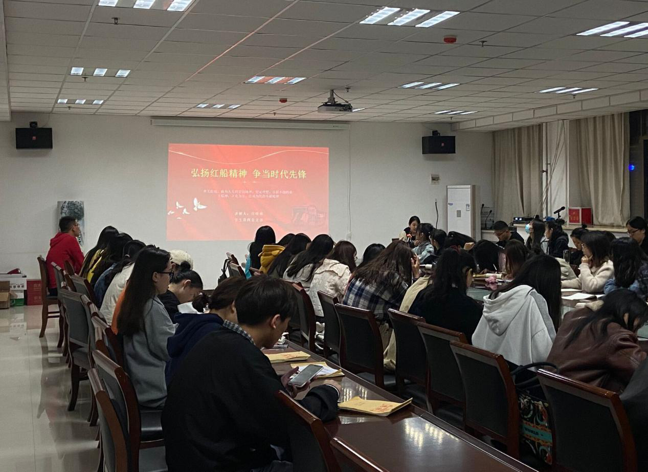 本次党课的主题是:弘扬红船精神,争当时代先锋。党课在电影《建党伟业》的片段中拉开序幕,电影中无产阶级奋斗者的热情感染着在场的每一位入党积极分子。党课主要围绕四个方面进行,分别是红船精神的由来、红船精神的丰富内涵、红船精神的历史地位以及红船精神的时代价值。她指出,红船精神引领着中国共产党员不忘初心、勇往直前,同样红船精神也是我们当代青年勇往直前的不竭动力,我们要做有理想、有信念、有抱负的现代主义青年。课上,同学们积极探讨对红船精神的认识及青少年应当如何弘扬红船精神。