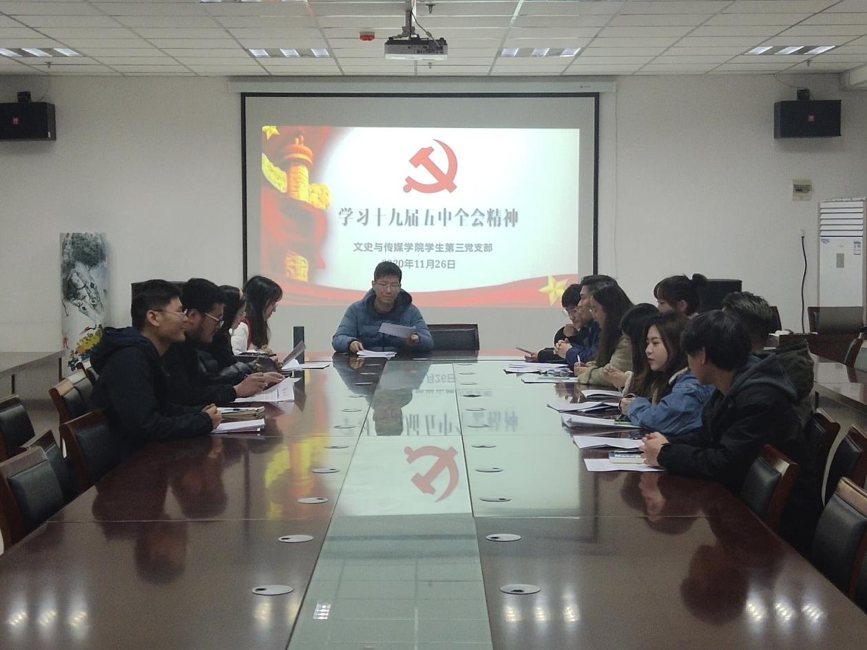 11月26日,我院学生第三党支部开展“学习十九届五中全会精神”主题党日活动。支部全体党员和预备党员参加本次活动。