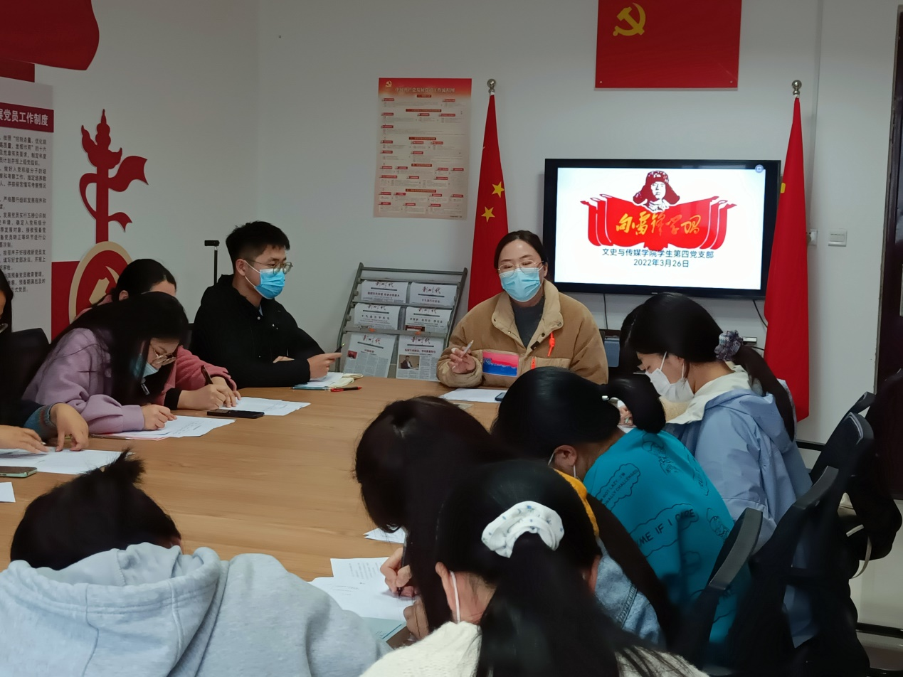 为大力弘扬雷锋精神,传播“奉献、有爱、互助、进步”的时代风貌,3月26日,我院学生第四党支部召开以“弘扬雷锋精神,树时代新风”为主题的党日活动。本次会议由支部书记鲍利涵主持,全体党员参加。