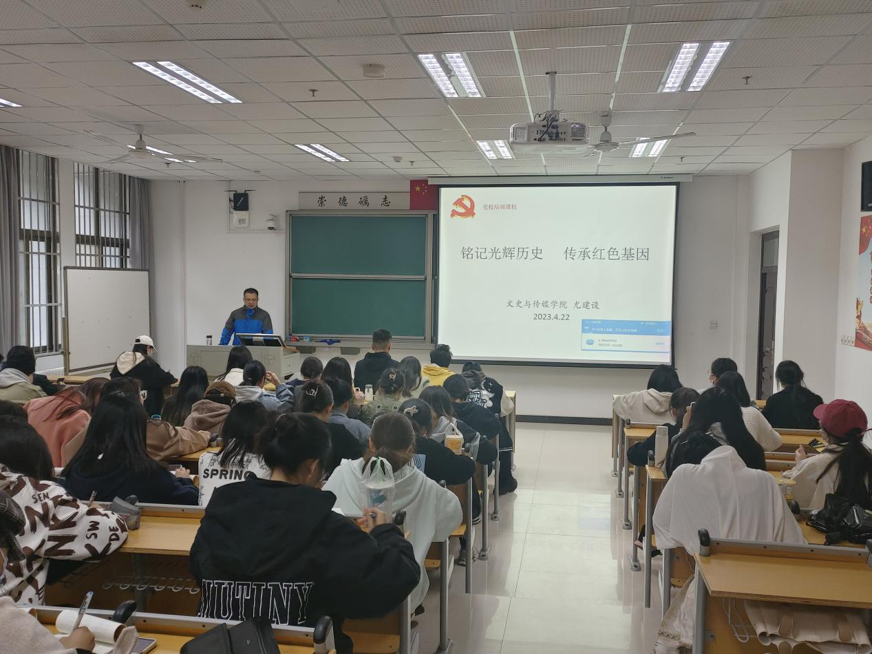 为深入学习贯彻习近平新时代中国特色社会主义思想,2023年4月22日,我院在文综楼104教室开展以“铭记光辉历史,传承红色基因”为主题的党课学习,本次党课由我院院长尤建设主讲。