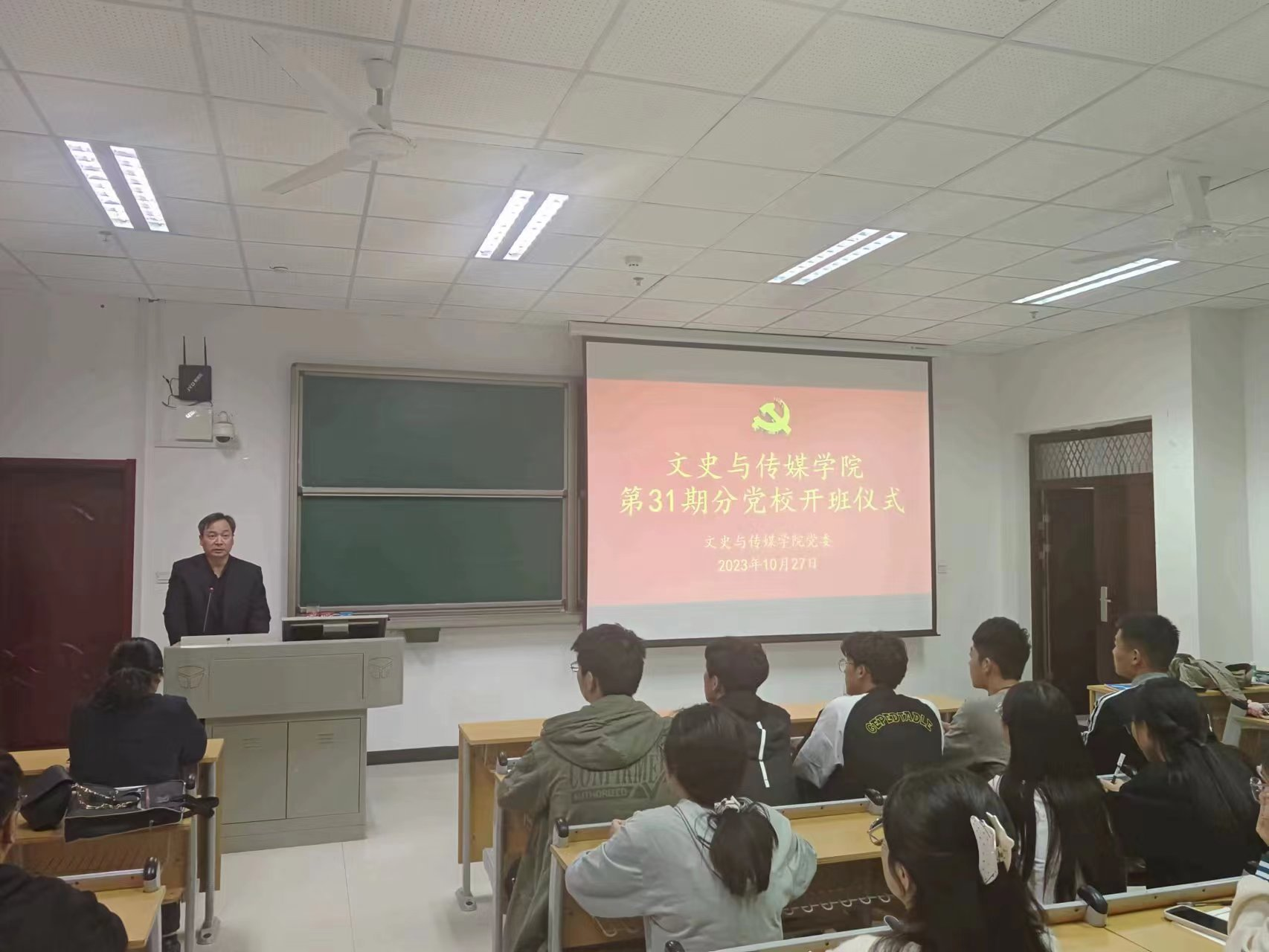 2023年10月27日,文史与传媒学院在文综楼604教室举行第31期分党校培训班开班仪式。开班仪式由我院团委书记訾冉主持。