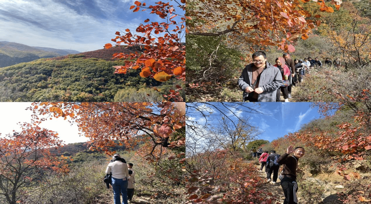 漫山遍野的红叶如霞似火,与青松翠柏交织成一幅绚丽的天然画卷。老师们沿着山间步道漫步,或驻足欣赏,或拍照留念,陶醉于这“霜叶红于二月花”的诗意境界中,欢声笑语在山谷间回荡,平日里伏案工作的疲惫在此刻一扫而空。