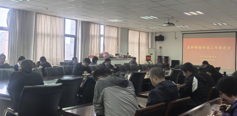 2024年10月18日下午,文史与传媒学院在文科楼1723会议室召开了本科教育教学审核评估推进会。会议由党委副书记訾冉主持,党委书记许涛、院长尤建设、副院长韩启振以及全体教师参会。