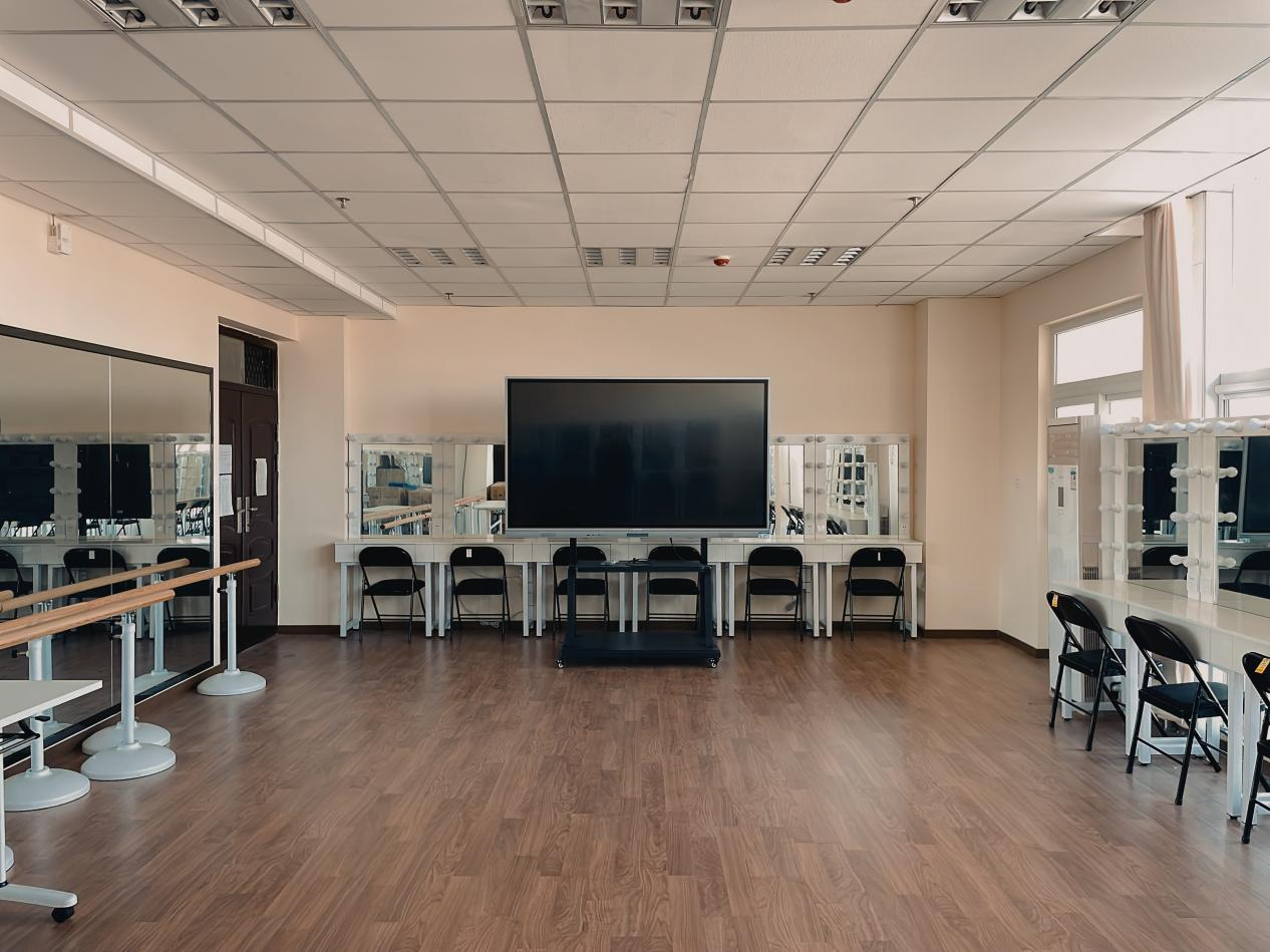 化妆造型与形象礼仪实训室配备了专业的化妆台、全身镜、升降把杆等,为学生提供了一个全面的妆容和礼仪学习平台,有利于其形象礼仪塑造以及社交素养的提升。