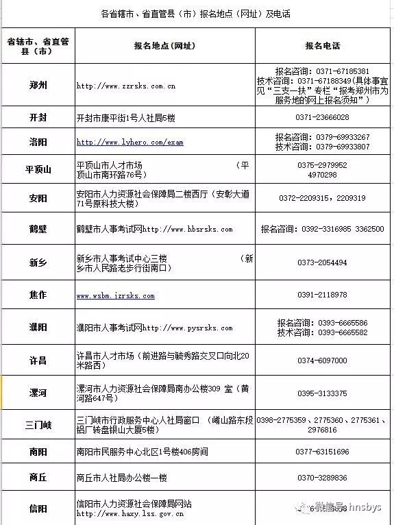 报名地点:所报服务地省辖市、省直管县(市)“三支一扶”办。
