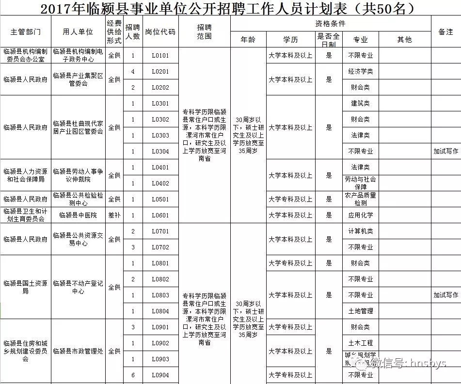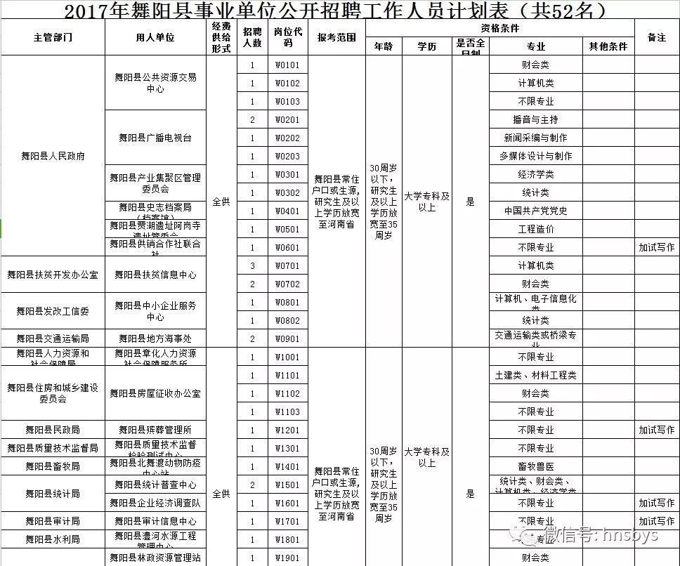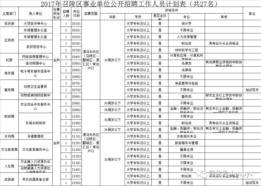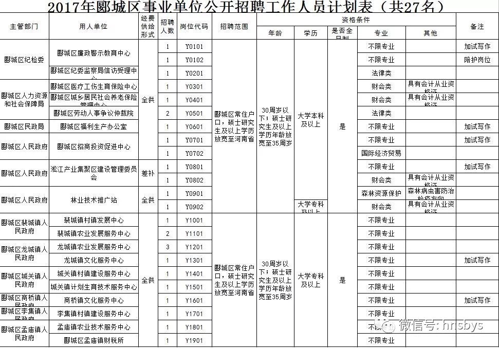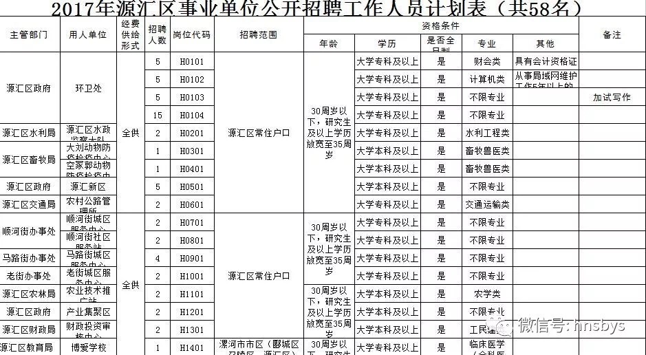(本次公开招聘事业单位工作人员,凡涉及户籍、年龄、工作经历等要求的,截止日期为2017年9月30日。)