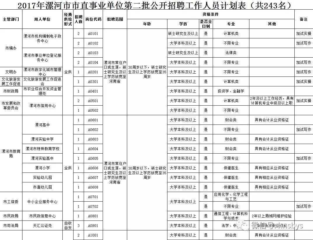 根据人员编制空缺和工作需要,本次面向社会公开招聘事业单位工作人员457名,其中市直事业单位243名,县区事业单位214名(临颍县50名、舞阳县52名、郾城区27名、源汇区58名、召陵区27名),具体招聘计划见附件。