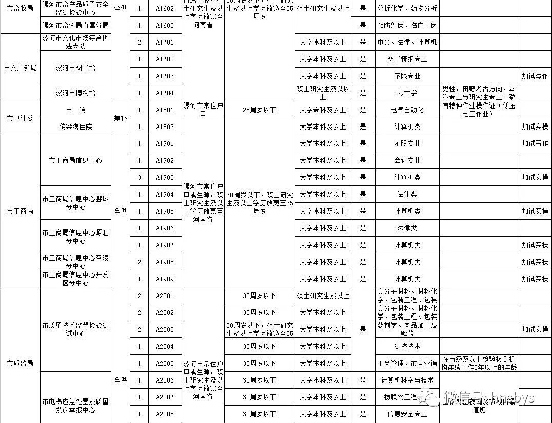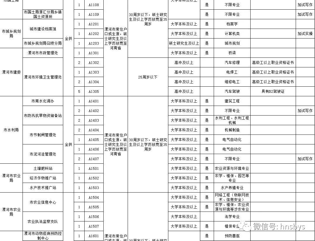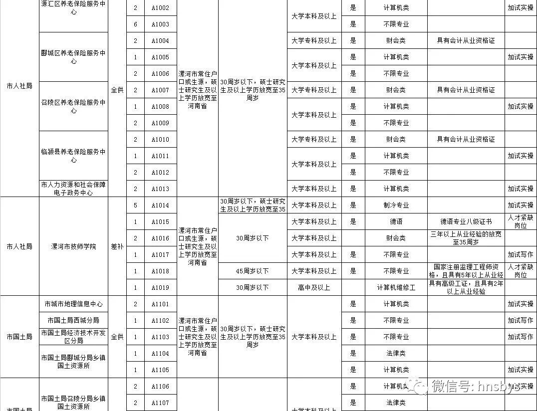 面试资格确认及领取面试通知书时间、地点:笔试成绩公布后在漯河市人力资源和社会保障局网站(http://www.halh.lss. gov.cn)通知。