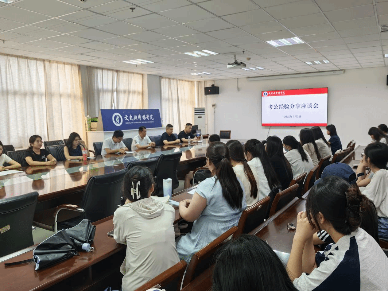为助力大三学生科学备考公务员考试,我院于6月5日在文综楼1723会议室组织开展了考公经验分享交流座谈会,邀请往届考公优秀毕业生及2025届成功“上岸”的应届毕业生,与大三学生面对面交流备考经验。