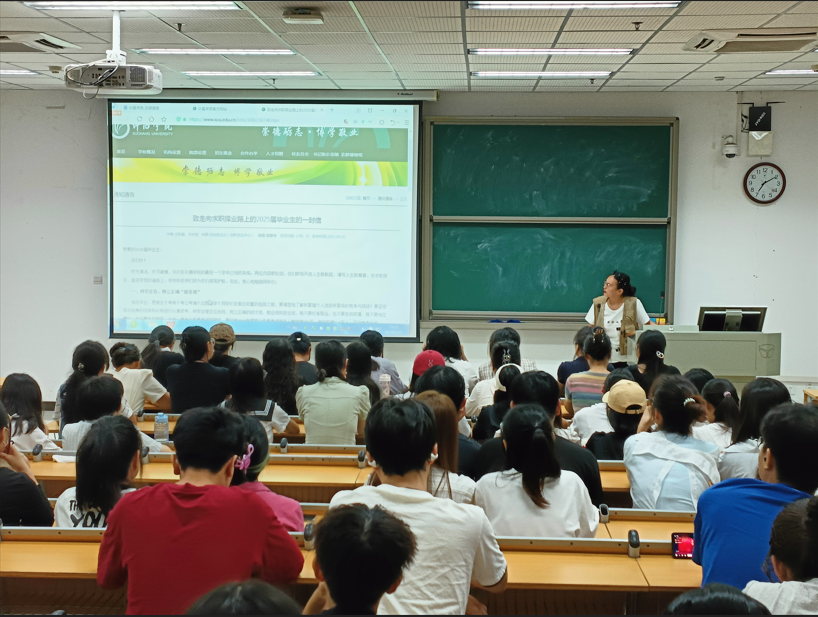 2024年9月6日下午,我分别A合四教室和文综楼309教室举行2025届毕业生就业教育“开学第一课”。本次就业教育“开学第一课”,分别由毕业班辅导员韩诗瑾老师和殷晓莹老师主持,部分2025届毕业生到场,其他同学通过线上会议参会。