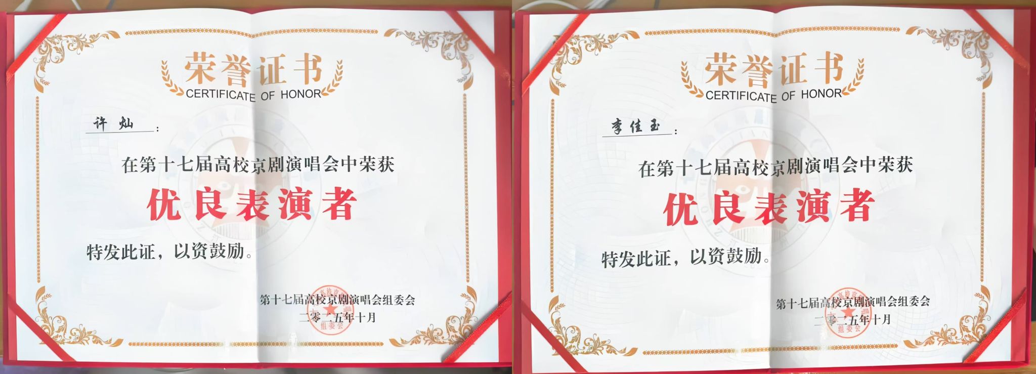 近日,第十七届全国高校京剧演唱会在江苏泰州落下帷幕,我院师生表现优异、斩获佳绩,所有参赛学生均荣获“优良表演者”称号,充分展现了我院艺术教育的丰硕成果。