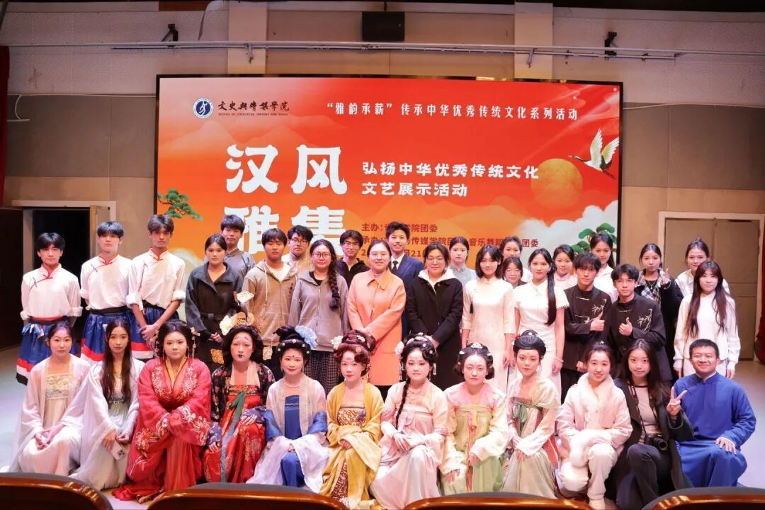 为传承中华优秀传统文化,厚植青年学生文化自信,2025年11月21日晚,我院“汉雅风集”弘扬中华优秀传统文化文艺展示活动在B合七演播厅精彩上演。学院师生代表现场观演,活动通过“文传之声”抖音平台同步直播,吸引线上线下众多观众共赏文化盛宴。