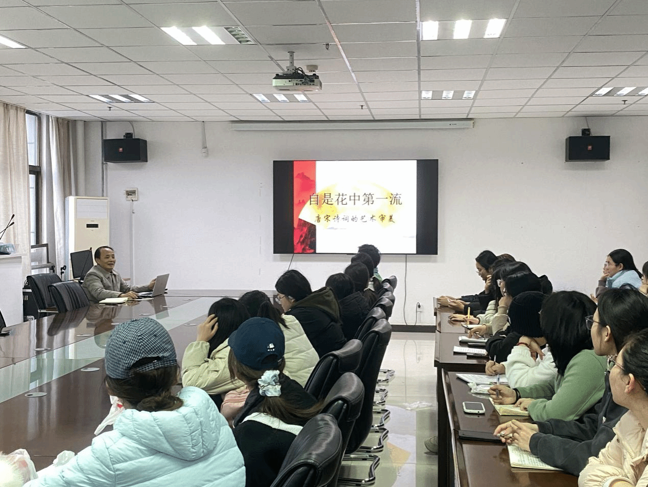 为深化新生人文素养,传承中华优秀传统文化,12月10日下午,文史与传媒学院《风雅集·人文素养提升计划·第二课堂名家报告》系列活动在文综楼1723会议室拉开帷幕。本次报告特邀我院魏发展教授作“自是花中第一流——唐宋诗词的艺术审美”专题讲座,2025级汉语言文学、历史学专业60余名新生代表现场聆听,感受古典诗词的永恒魅力。