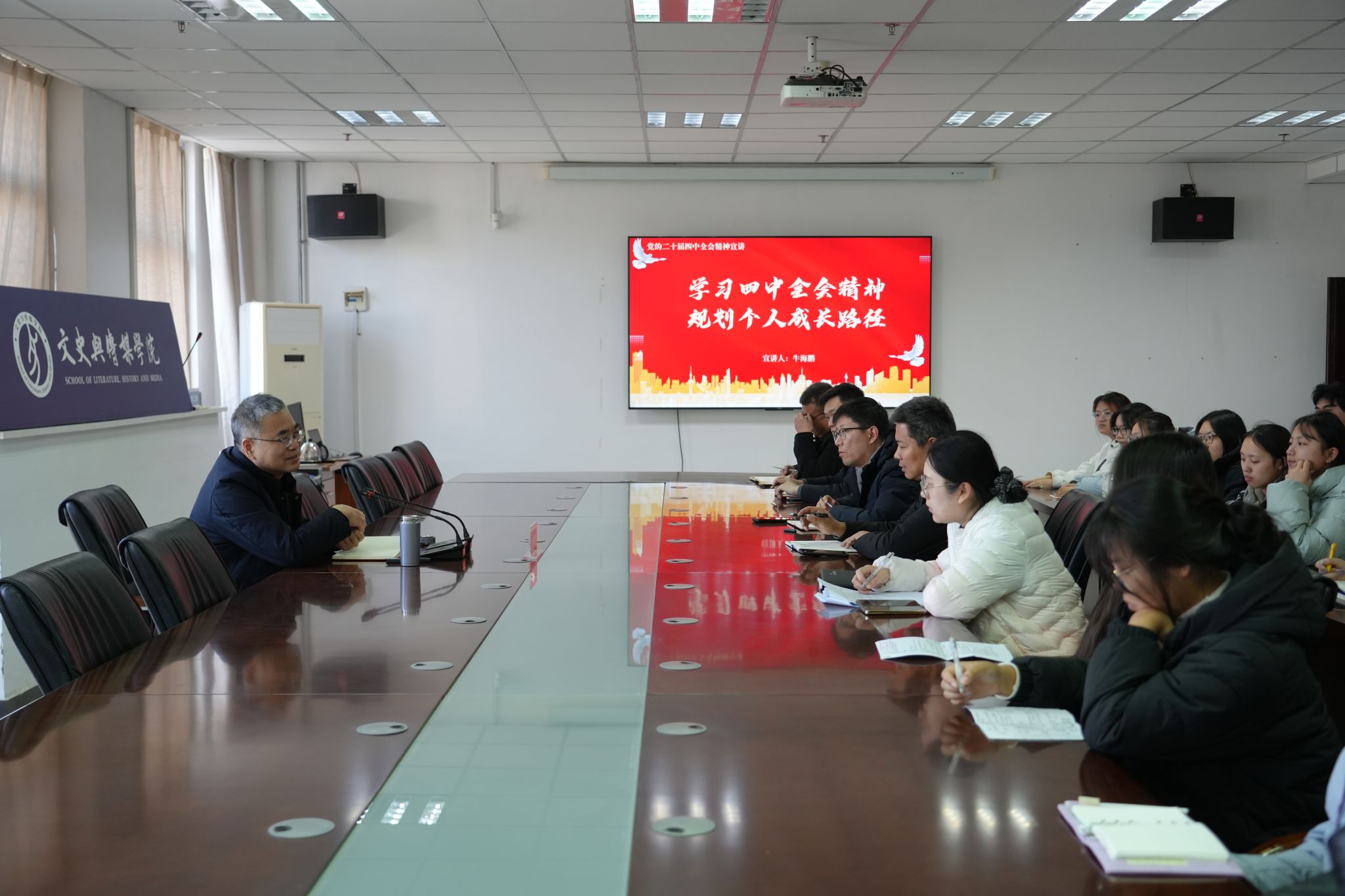 为深入学习贯彻党的二十届四中全会精神,引导学生将国家战略需求与个人发展紧密结合,12月25日下午,副校长牛海鹏教授在文综楼1723教室为地理与空间信息学院、文史与传媒学院师生讲授思政课,宣讲党的二十届四中全会精神。本次宣讲由文史与传媒学院党委书记李立夏主持。