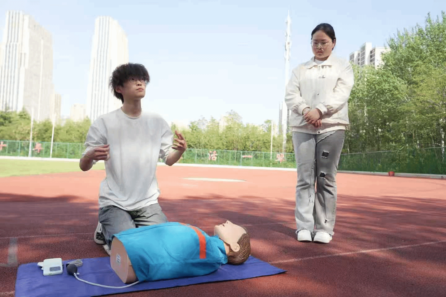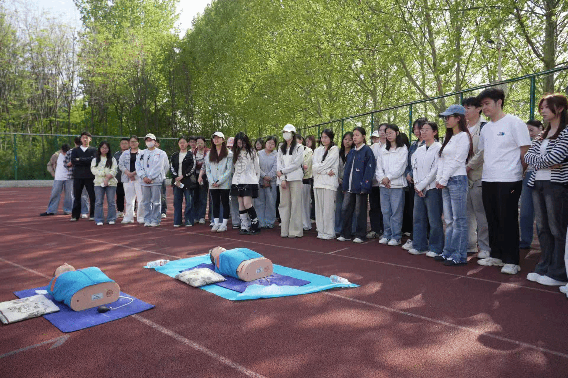 2026年4 月 10 日下午,我院在静庐操场开展心肺复苏专项急救培训活动,将实用急救技能送到同学身边,扎实推进“我为同学办实事”走深走实。本次培训特邀医学院学生到场开展现场教学指导,我院各年级学生代表参加学习。