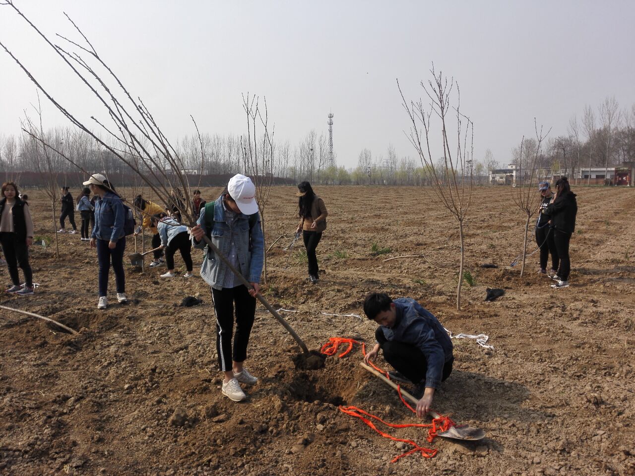 中午时分,汉文三班同学来到许昌崔庄开始进行植树活动。略显笨拙的动作,经过村民的指导和一次次劳动实践,同学们很快掌握了种树的技巧。同学间相互帮助挖土坑、填土、浇水,每个人都在做着自己力所能及的事。在一番汗水和努力后,一颗颗树苗栽进了土壤,为崔庄增添了一抹绿色生机。