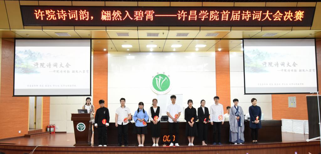 为提高广大师生对诗词的关注程度,展现中华诗词之美,弘扬中华优秀传统文化。4月22日下午,许昌学院首届汉学文化节诗词大会决赛在学术报告厅拉开帷幕。许昌市诗词协会会长李俊恒教授、我校学生处副处长魏发展教授、文学与传媒学院党总支副书记李立夏老师以及中国成语大会冠军、诗词大会亚军彭敏出席了本次决赛,我校热爱诗词的广大师生共同观看了此次比赛。