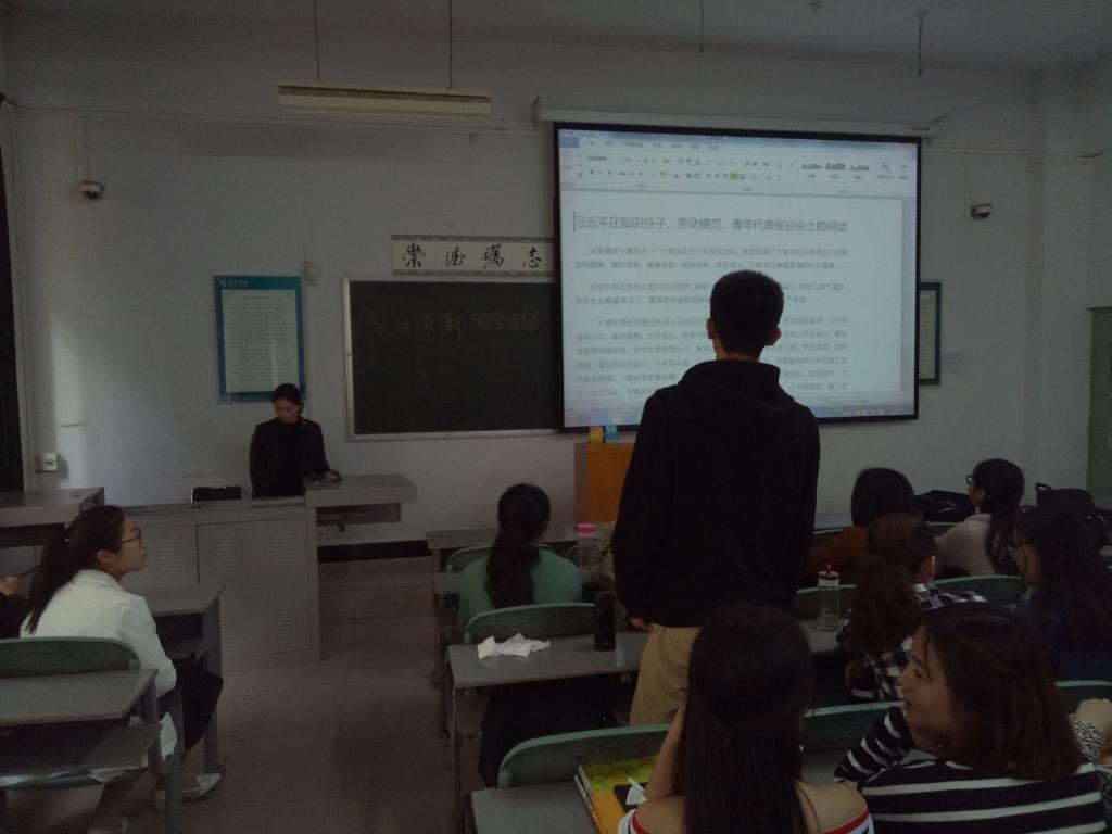 为深入学习贯彻习近平总书记系列重要讲话精神,扎实推进共青团改革,大力推进从严治团,切实增强团员的先进性和光荣感,4月27日下午,我院14级汉语言文学专业和汉语国际教育专业在C106教室开展学“习”学“新”主题团日活动。本次活动由14级汉语言文学一班团支书孙衡山主持,14级汉语言文学专业和汉语国际教育专业全体学生到场学习。