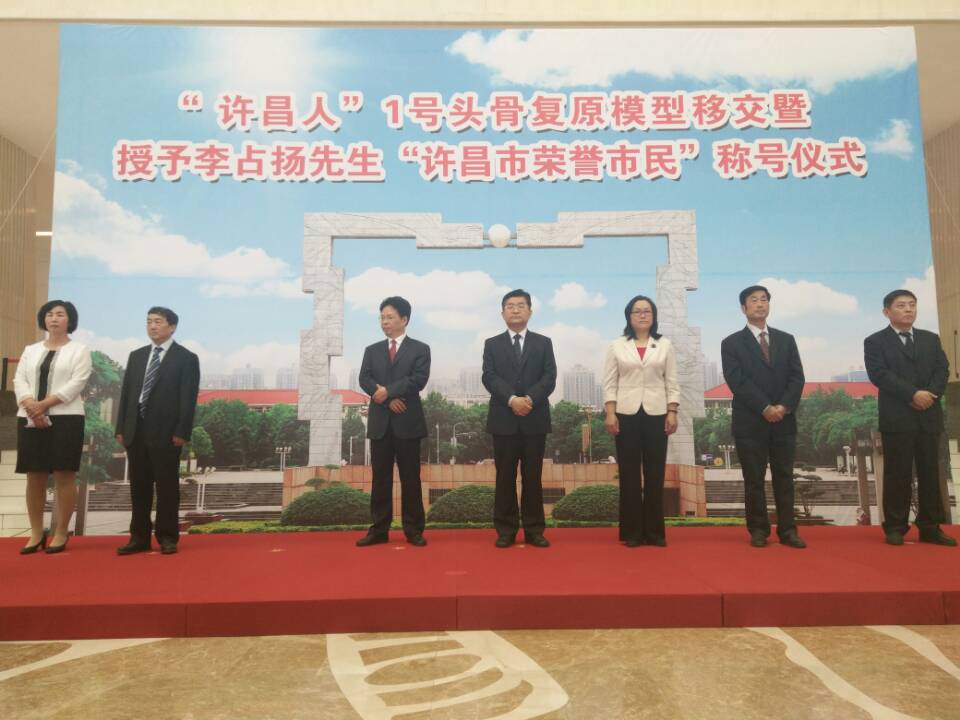 5月12日上午八点半,文学与传媒学院张科老师及15级汉语国际教育专业全体学生前往许昌市博物馆代表我校参加“许昌人”1号头骨复原模型移交仪式暨授予李占扬先生“许昌市荣誉市民”称号仪式和李占扬先生专题报告会。许昌市委宣传部部长刘瑞红参加了本次活动。