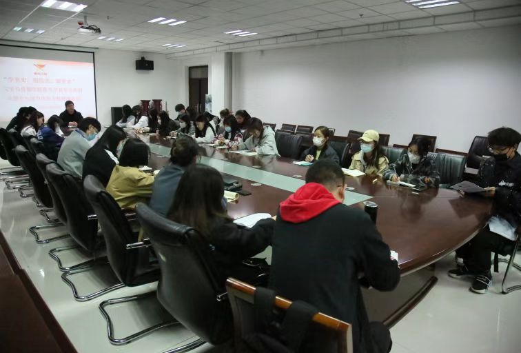 11月18日,我院在文综楼1723会议室召开“学党史,强信念,跟党走”青马学员学习贯彻党的十九届六中全会精神培训交流会。本次会议由我院团委书记訾冉主讲,我院全体第二期“青马工程”培训班学员参加了培训交流。
