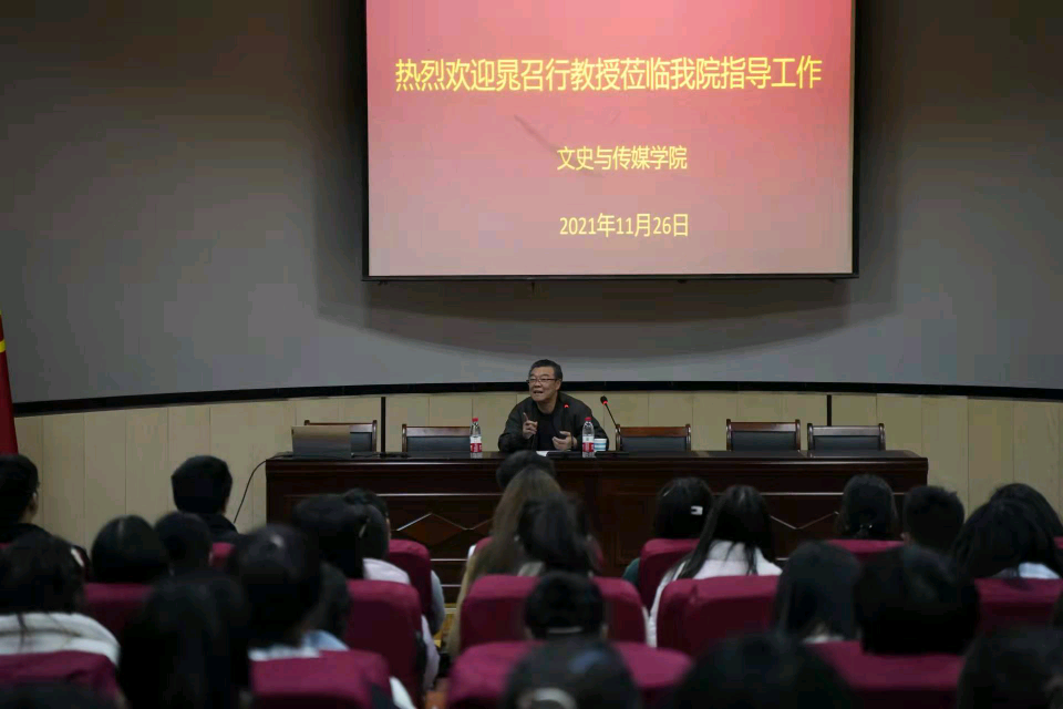 11月26日,原许昌学院副校长、原许昌职业技术学院校长晁召行教授应邀在B合八会议室为我院新生进行了入学教育讲座,我院院长尤建设、辅导员老师殷晓莹、韩诗瑾参加,我院2021级汉语言文学专业全体新生参与讲座。