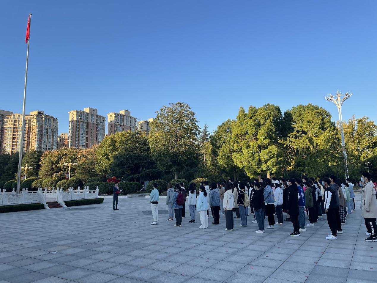 2022年10月10日上午七点,我院在弘毅广场举办“国旗下的誓言”升国旗仪式暨主题宣讲活动。我院党委副书记马丽娜、2022级辅导员和学生代表参加此次升旗仪式。