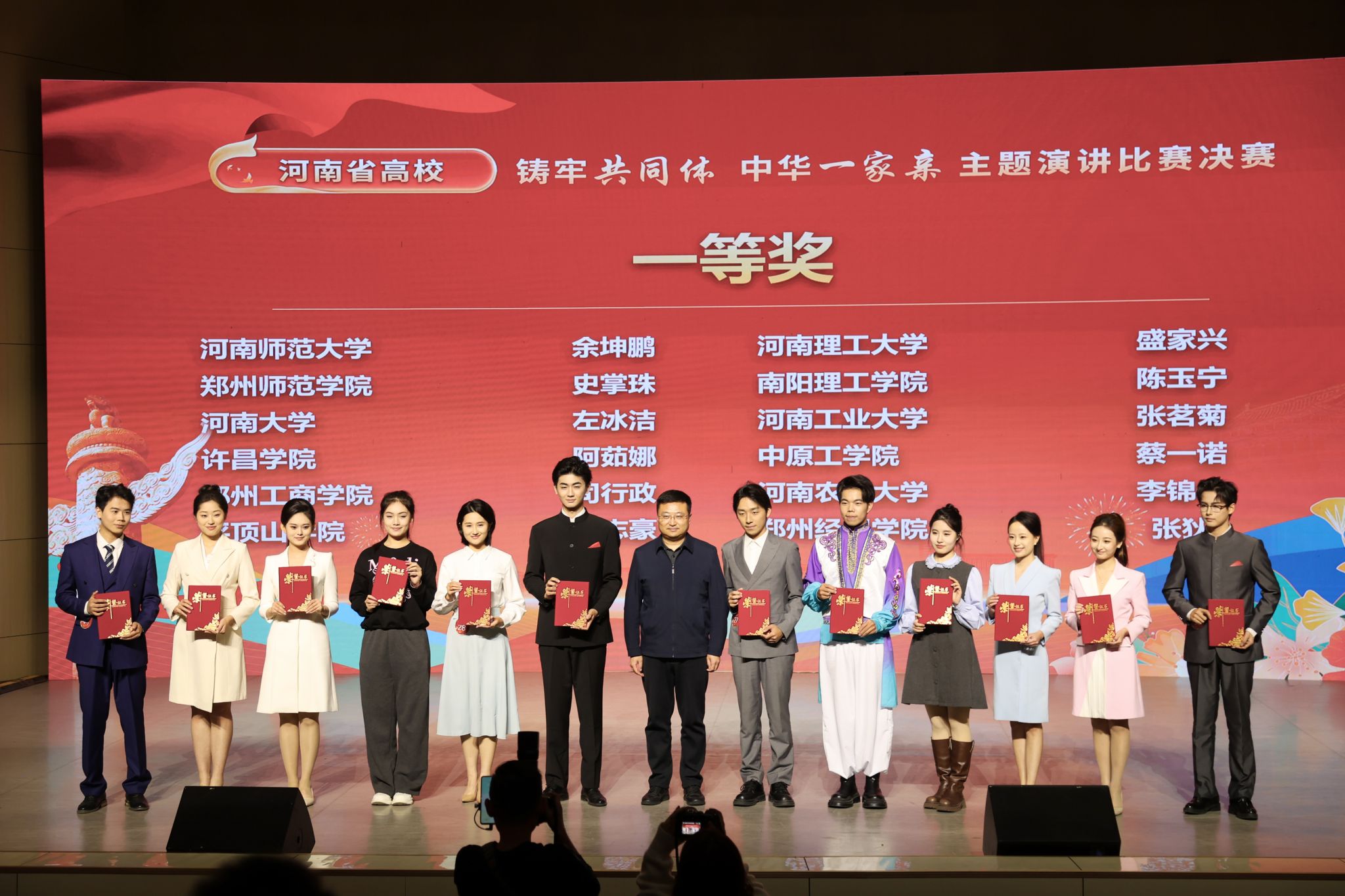 石榴花开籽同心,青春妙语颂华章。2025年11月14日,由河南省民族宗教委、河南省教育厅主办,河南师范大学承办的河南省高校“铸牢共同体 中华一家亲”主题演讲比赛决赛在河南师范大学西校区圆满落幕。经过多轮激烈角逐,我院2024级播音与主持艺术专业学生阿茹娜在万光明老师的悉心指导下,凭借题为《曲水连古都 同心筑华章》的精彩演讲脱颖而出,荣获一等奖。现场近500名师生共同见证了这一荣耀时刻。