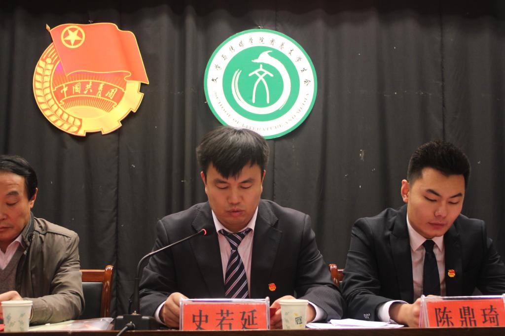 接着,文学与传媒学院团总支副书记訾冉作共青团许昌学院文学与传媒学院总支委员会工作报告,报告包括“过去五年的工作回顾”和“今后几年的工作展望”两部分内容。在总结过去五年取得辉煌成绩的同时,也看到了工作上的问题和不足,理清思路,锐意创新,努力开创我院共青团工作新局面。