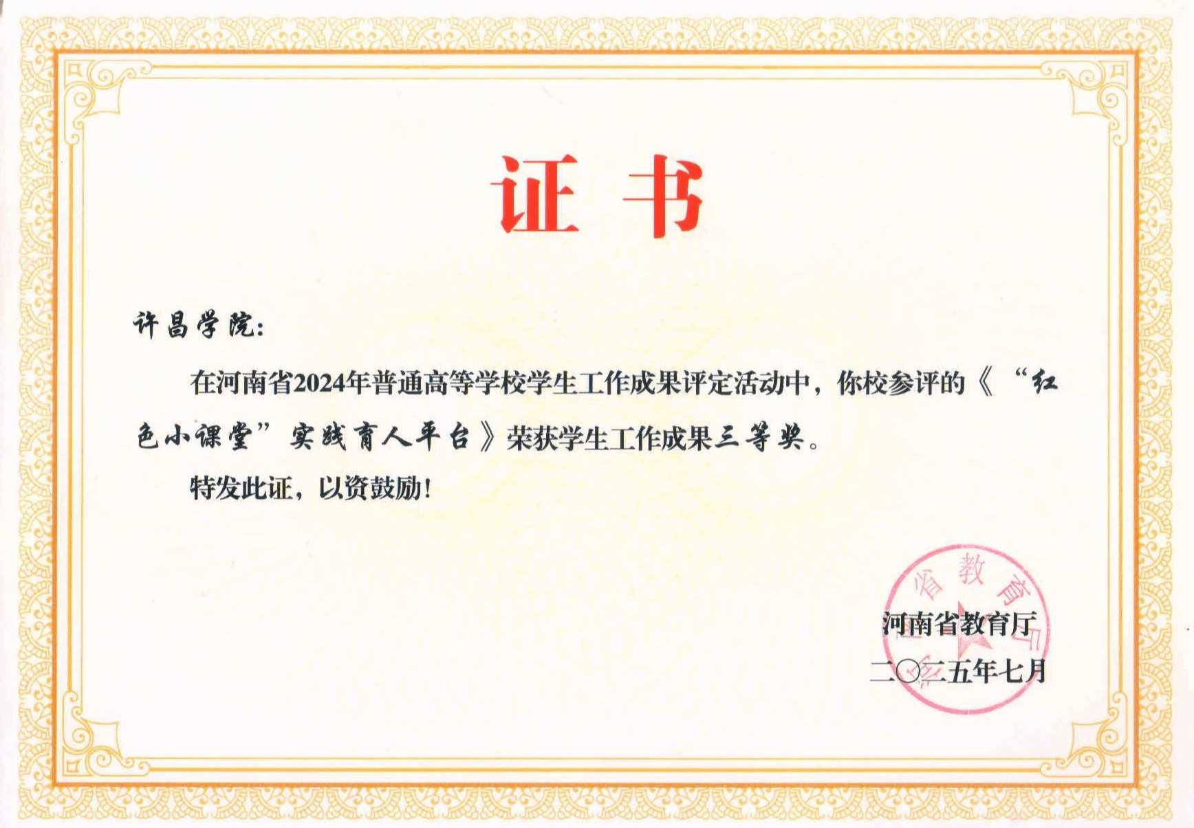 近日,河南省教育厅公布2024年普通高等学校学生工作成果评定结果,我院“红色小课堂”实践育人平台凭借鲜明的育人特色与突出的工作成效,荣获实践服务育人类别三等奖。