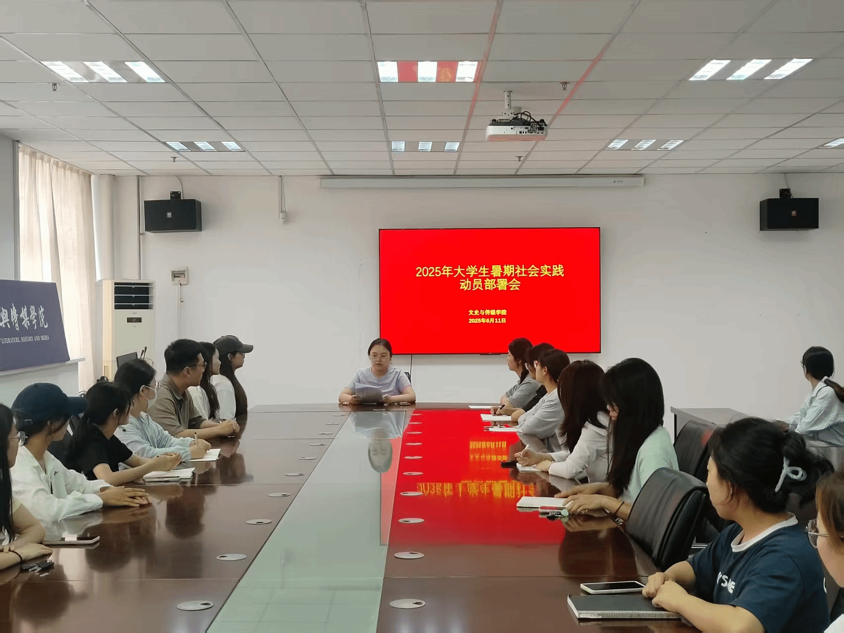 2025年6月11日,我院在文综楼1723会议室召开了2025年文史与传媒学院大学生暑假社会实践活动动员部署会。我院团委书记张姗姗和全院各班班长、团支书参加会议。