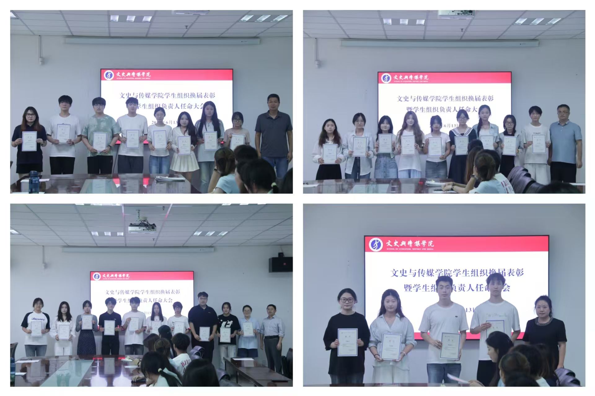 2025年6月13日,我院在文综楼1723会议室召开了2025年度学生组织总结表彰暨换届任职大会。全体领导班子成员、全体辅导员以及各学生组织主要学生干部参加会议。