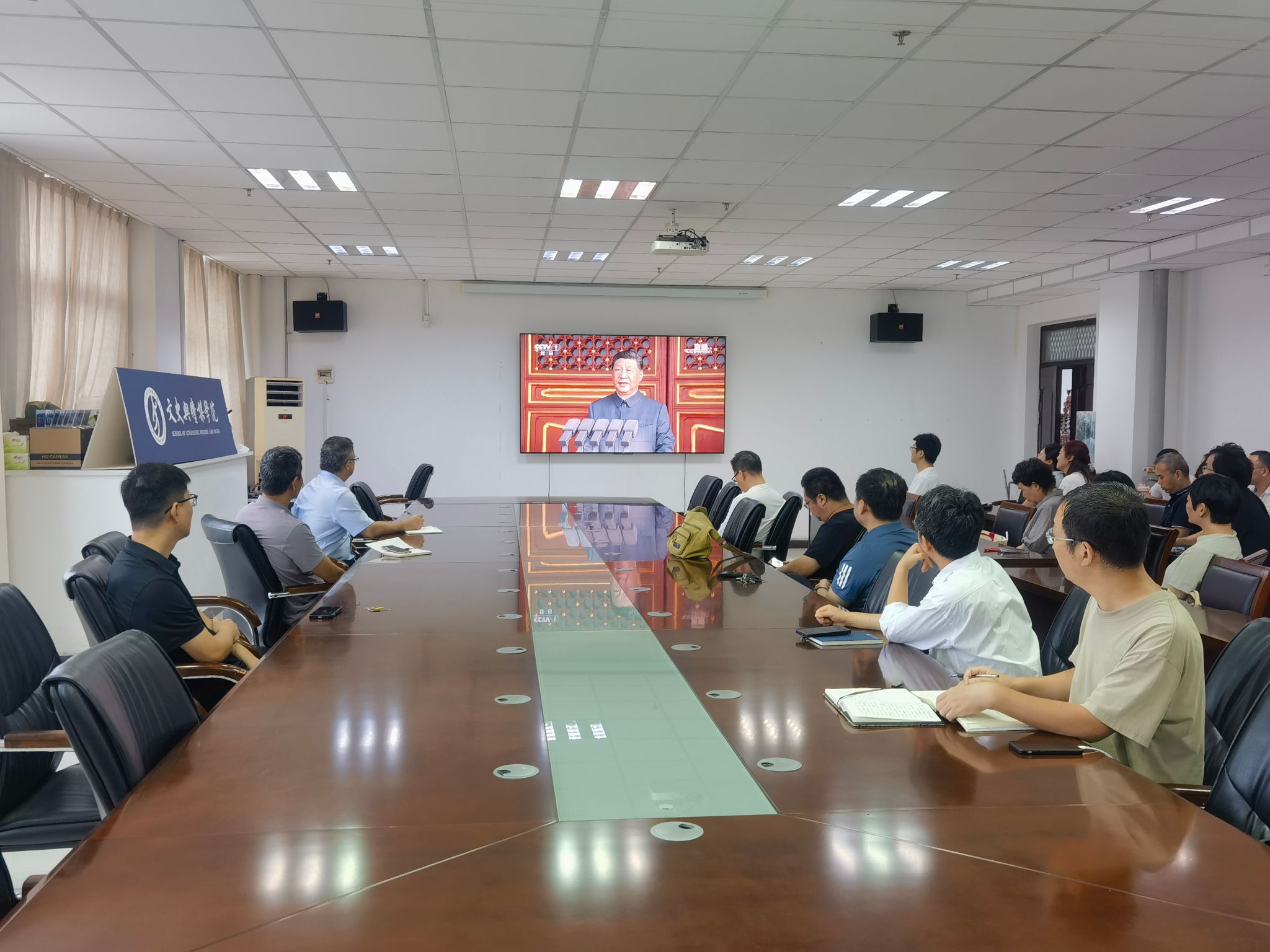 为深切缅怀革命先烈,大力弘扬伟大抗战精神,厚植师生家国情怀,2025年9月3日上午9时,我院组织全体党员教师与在校学生分别在文综楼1723会议室、B合七教室,集中观看纪念中国人民抗日战争暨世界反法西斯战争胜利80周年阅兵式直播,重温历史、凝聚力量。