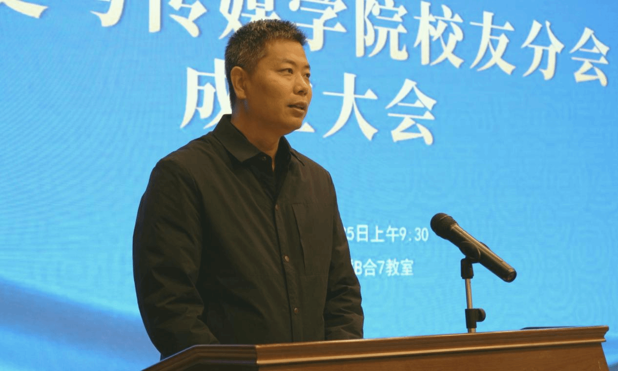 冯晓民在大会上致辞。他指出校友是学校发展最宝贵的资源与最坚实的后盾,文史与传媒学院校友分会的成立,是学院校友工作从“零散联络”走向“系统规范”的重要里程碑。他对文史与传媒学院校友分会发展提出三点期望:一是要做“情感纽带”,常态化组织校友活动,让分会成为各地“文传人”的精神家园;二是要做“发展桥梁”,推动校友资源与学院人才培养、学科建设深度对接;三是要做“形象窗口”,宣传校友事迹与学院成果,为学校高水平应用型大学建设传递“文传声音”。