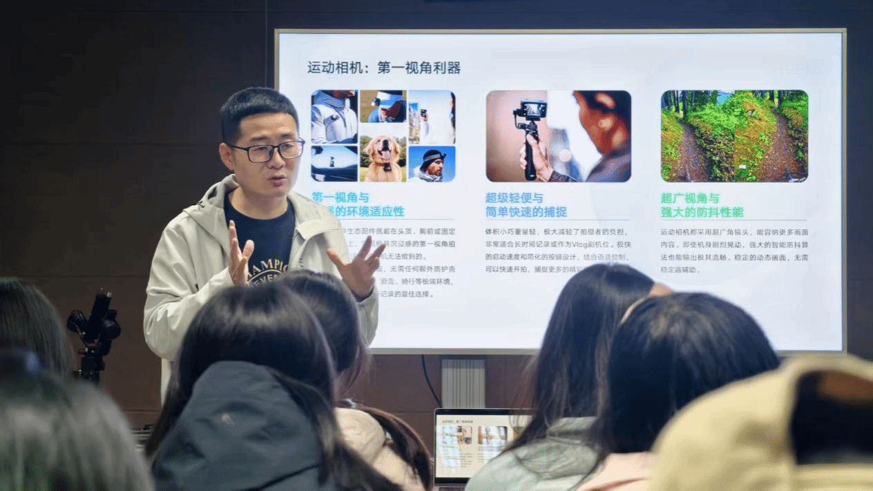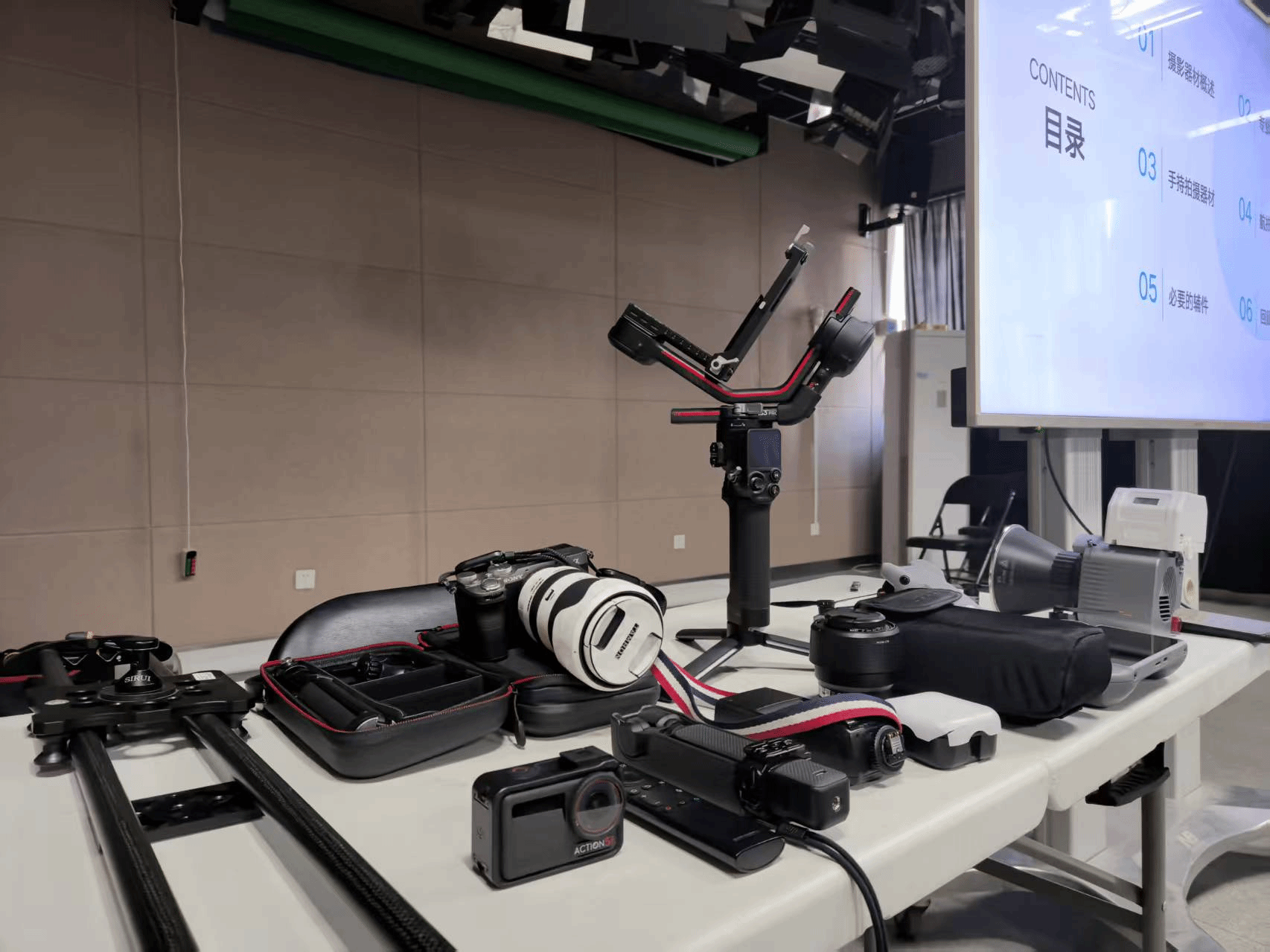 两位老师携带电影机、单反相机、手持相机、各类航拍器材、灯光器材、录音器材、滑轨器材、存储设备等摄影设备。此次供同学们使用的设备具备全面化、最新化的特点,让学生在课堂上就可以对摄影器材进行全方位实践操作。李斌老师就学生提出的设备问题,做了题为《摄影器材基础入门解析》的专题讲座,我院宋昕睿老师也对学生提出的问题做相关解答。
