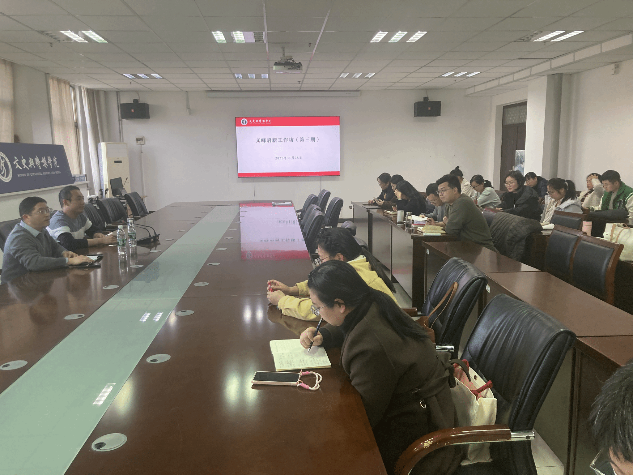 2025年11月28日,我院在文综楼1723会议室举办文峰启新工作坊第三期。本期工作坊由我院副院长韩启振主持,我院青年教师参加。