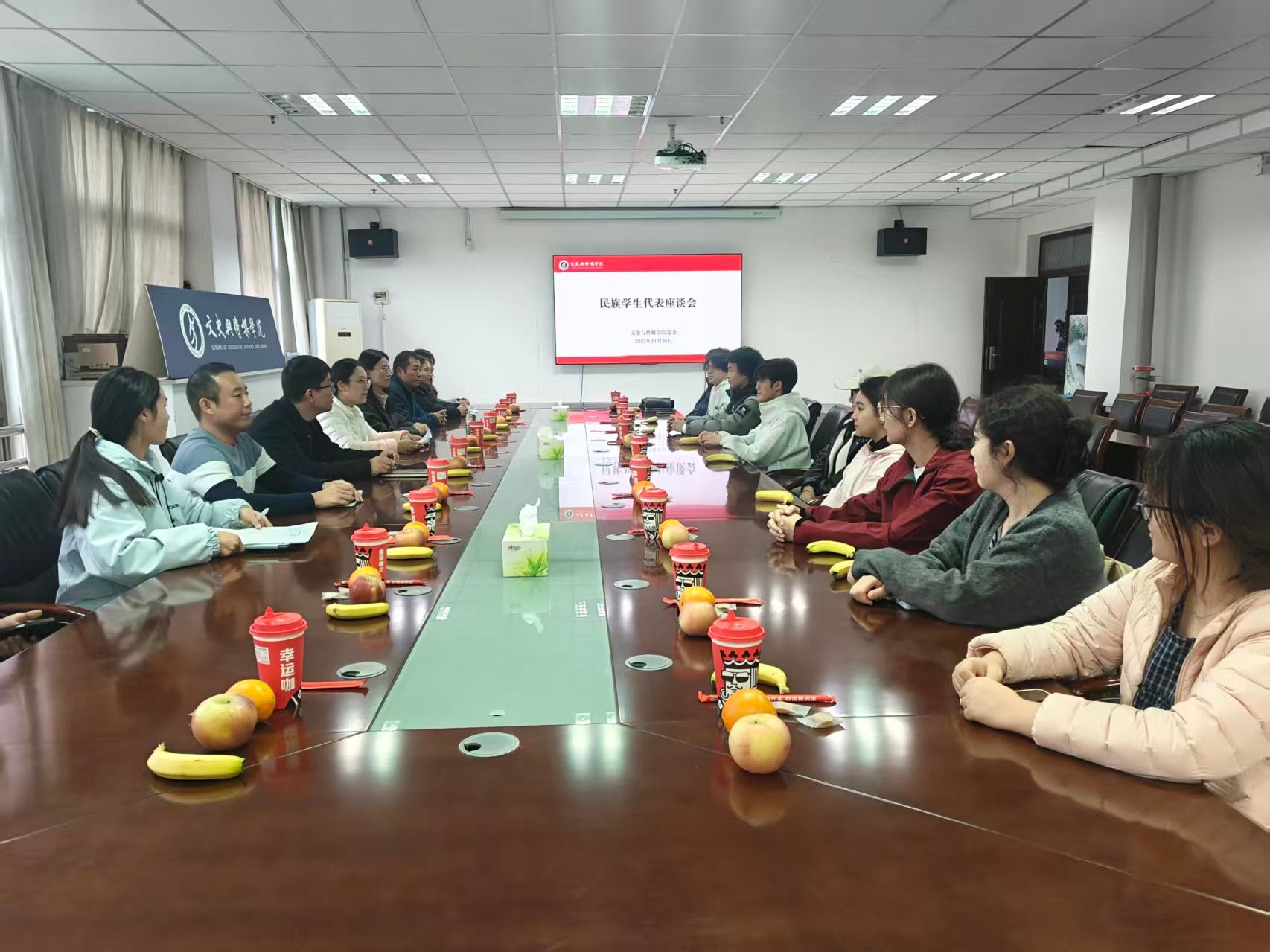 为深入贯彻落实习近平总书记关于加强和改进民族工作的重要思想,增进各民族学生交往交融,铸牢中华民族共同体意识,2025年11月26日,我院在文综楼1723会议室召开民族学生代表座谈会。学院党委副书记訾冉、团委书记张姗姗、学工办主任赵苏理、播音与主持艺术系副主任万光明,与各民族学生代表齐聚一堂,共话民族团结与成长心声。
