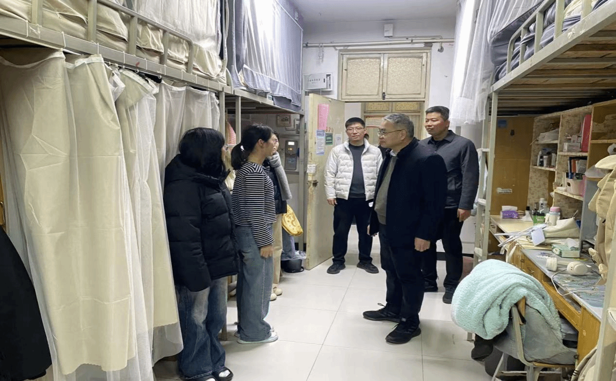 走访过程中,牛海鹏一行认真查看宿舍环境,重点检查消防安全设施、用电规范及卫生情况,并对可能存在的安全隐患进行了重点排查和现场指导。针对近期校园安全工作的重点,他强调,宿舍安全事关学生切身利益,是平安校园建设的重要基础,必须牢固树立“校园安全无小事”的责任意识,持续加强日常管理、隐患整改与安全教育,切实提高师生安全防范和应急处置能力,坚决杜绝安全事故发生。在交流过程中,牛海鹏亲切询问了同学们的学习生活情况,他叮嘱同学们要切实提高安全意识,养成良好的生活习惯,营造积极向上的宿舍文化氛围,将宿舍建设成为团结互助、共同成长的温馨家园。
